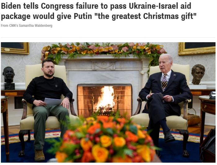 另據(jù)美國有線電視新聞網(wǎng)(CNN)報(bào)道,當(dāng)天下午,澤連斯基前往白宮會(huì)見拜登,雙方在會(huì)談中都強(qiáng)調(diào)了美國對(duì)烏援助的緊迫性。拜登稱,如果美國會(huì)未能通過對(duì)烏援助計(jì)劃,這將是“送給俄總統(tǒng)普京最好的圣誕禮物”。