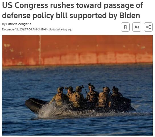 與此同時,美國總統(tǒng)拜登12日表示,強烈支持國會參眾兩院迅速在年底前通過這份2024財年《國防授權(quán)法案》。