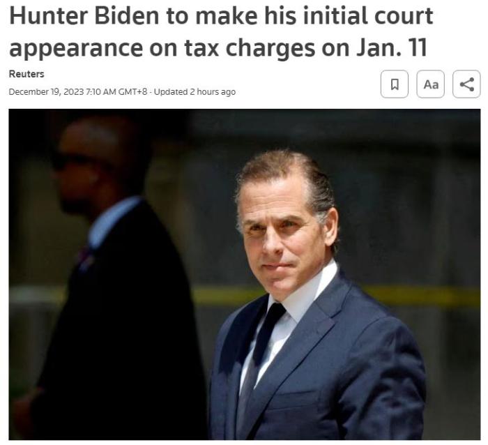 美國(guó)總統(tǒng)拜登兒子亨特2024年1月將就稅務(wù)指控出庭