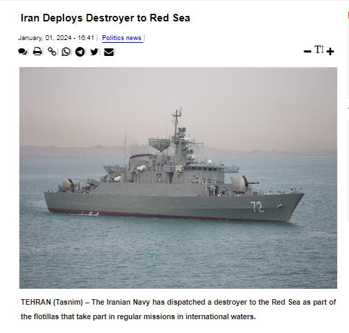 中新網(wǎng)1月2日電 據(jù)伊朗塔斯尼姆通訊社當(dāng)?shù)貢r(shí)間1日報(bào)道,在紅海緊張局勢加劇之際,伊朗的“厄爾布爾士”號(hào)軍艦已經(jīng)穿過曼德海峽,進(jìn)入紅海。