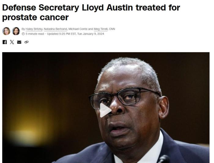 中新網(wǎng)1月10日電 綜合外媒報道,當(dāng)?shù)貢r間9日,美國沃爾特·里德國家軍事醫(yī)學(xué)中心發(fā)布的一份聲明指出,美國國防部長奧斯汀被診斷出患有前列腺癌,并出現(xiàn)并發(fā)癥,導(dǎo)致他于1月初被送往醫(yī)院。目前,奧斯汀仍在接受治療。