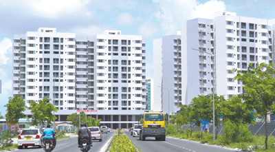 駕車從首都馬累出發(fā),駛過馬爾代夫首座跨海大橋中馬友誼大橋,不久便到了當(dāng)?shù)氐诙髰u胡魯馬累。沿著寬闊的大街前行,一排排色彩明亮的樓房赫然映入眼簾。登高遠(yuǎn)眺,十幾幢白墻藍(lán)頂?shù)臉欠?,與遠(yuǎn)處蔚藍(lán)的大海相互映襯,格外醒目;另一個粉墻紅頂?shù)臉侨号c其相鄰,兩個樓群以林木蔥郁的街心花園相隔。