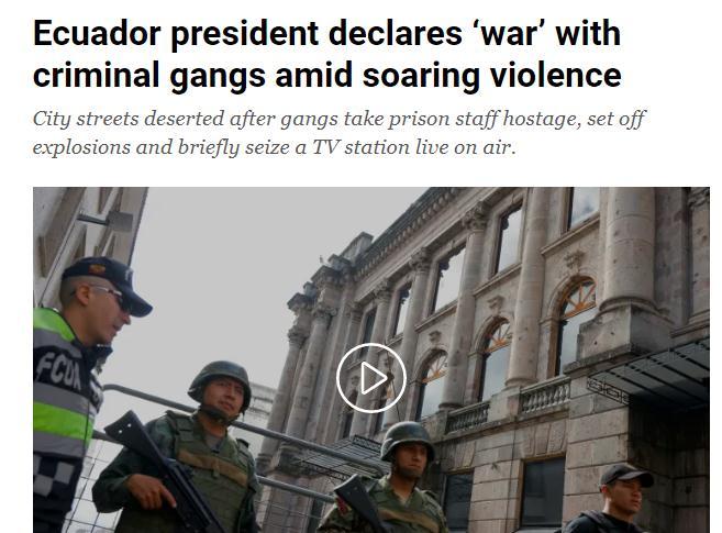 近來,該國各地發(fā)生了一系列暴力事件,造成至少10人喪生。此外,該國一家電視臺遭武裝人員闖入,多所監(jiān)獄發(fā)生騷亂,數(shù)名警察遭到綁架,“頭號通緝犯”、犯罪集團“Los Choneros”頭目馬西亞斯則在獄中失蹤。