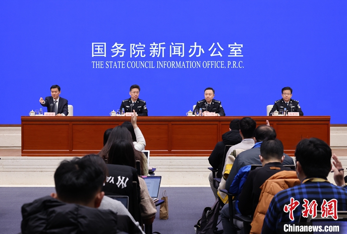 1月11日,中國國務(wù)院新聞辦公室在北京舉行新聞發(fā)布會,國家移民管理局副局長劉海濤、外國人管理司司長毛旭、邊防檢查管理司司長池景陽介紹便利外籍人員來華5項措施有關(guān)情況,并答記者問。 中新社記者 楊可佳 攝