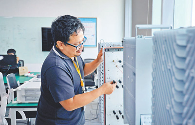 在泰國最大移動運(yùn)營商AIS和中興(泰國)通信公司聯(lián)合創(chuàng)建的AIS—ZTE聯(lián)合創(chuàng)新中心內(nèi),泰國工作人員在對通信設(shè)備進(jìn)行檢修調(diào)試。