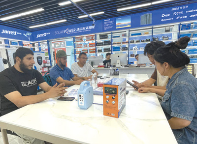 最近,埃馬紐埃爾又開始關(guān)注新能源產(chǎn)品?!翱溌∫恍┑胤酱嬖陔娏Χ倘?、供電不穩(wěn)的問題,很多當(dāng)?shù)厝讼M夷茉谥袊业胶线m的產(chǎn)品?!睘榇?,他把目標(biāo)瞄準(zhǔn)了義烏國際商貿(mào)城的新能源產(chǎn)品市場(chǎng),尋找到一些適合喀麥隆的光伏設(shè)備。“中國的新能源產(chǎn)品性能可靠、性價(jià)比高,產(chǎn)品品類覆蓋領(lǐng)域廣泛?!卑qR紐埃爾表示,大到醫(yī)療機(jī)構(gòu),小到禽畜養(yǎng)殖場(chǎng),中國光伏設(shè)備供應(yīng)的電力有助于滿足當(dāng)?shù)孛癖娚a(chǎn)生活的用電需求。