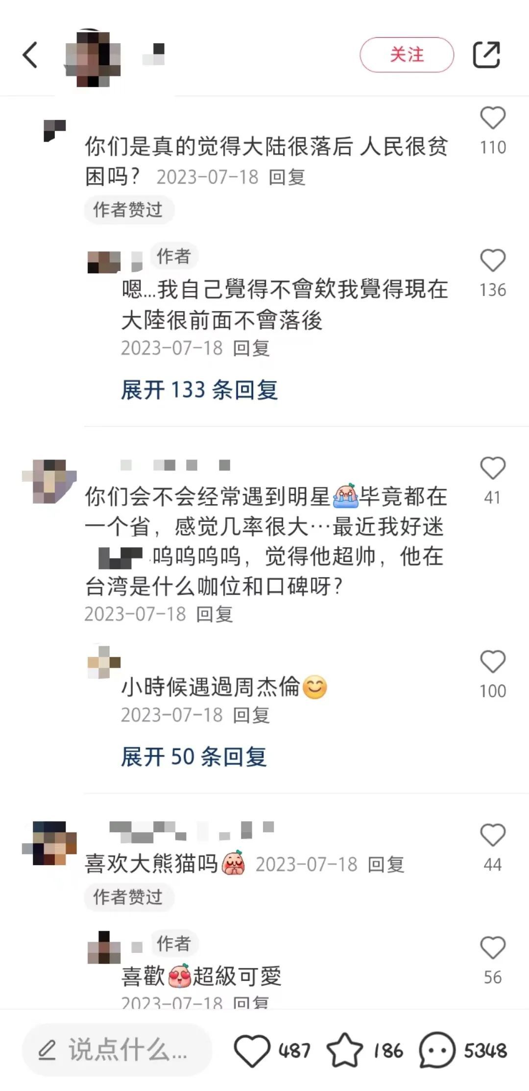 “大陸哪個城市的美食多?”“用現(xiàn)金支付可以嗎?”“畢業(yè)后想去大陸工作,可以分享一下經(jīng)驗嗎?”……小紅書上有不少“臺灣人問,大陸人答”的帖子,兩岸年輕人就生活、文化、飲食等話題,在評論區(qū)留言、互動。當(dāng)然,也有臺灣年輕人現(xiàn)身回答島內(nèi)情況,同樣熱評紛紛。