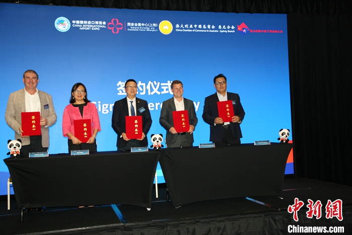 當(dāng)?shù)貢r(shí)間1月30日,第七屆中國國際進(jìn)口博覽會推介會在澳大利亞悉尼舉行。部分澳大利亞企業(yè)確認(rèn)參加第七屆進(jìn)博會并簽訂協(xié)議?!?中新社記者 顧時(shí)宏 攝