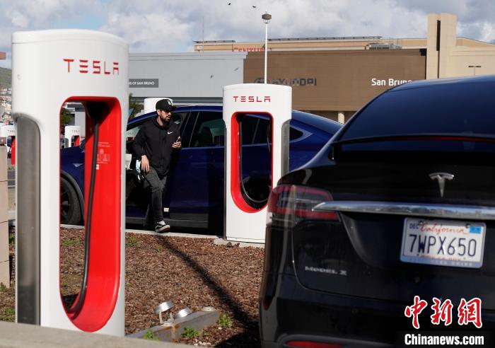 當(dāng)?shù)貢r間2月2日,車主在位于美國加州圣布魯諾一處停車場給特斯拉汽車充電。 中新社記者 劉關(guān)關(guān) 攝