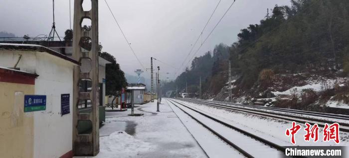 風(fēng)雪中的官壩站。懷化供電段供圖