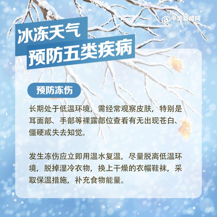 中新網(wǎng)北京2月7日電 近期我國中東部地區(qū)出現(xiàn)大范圍持續(xù)性低溫雨雪冰凍天氣過程,局部地區(qū)累計(jì)降雪量將接近或超過歷史同期,雨雪覆蓋范圍廣、持續(xù)時(shí)間長、凍雨范圍大,雨雪冰凍災(zāi)害風(fēng)險(xiǎn)高,恰逢春節(jié)人員大規(guī)模流動(dòng),以下健康防護(hù)要點(diǎn)請查收。