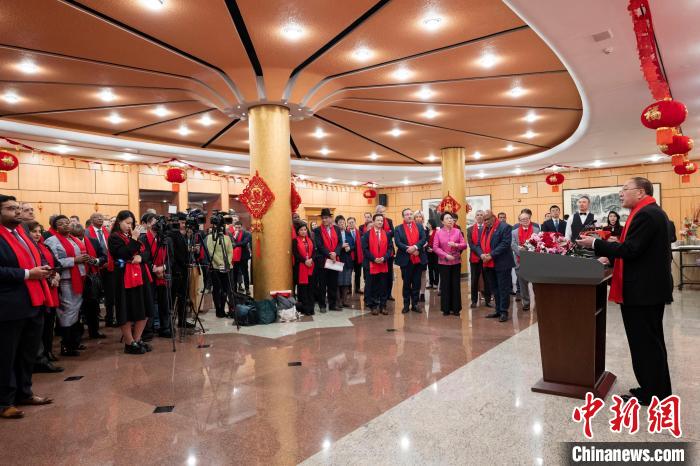 張軍在致辭時向現(xiàn)場來賓致以節(jié)日問候并向祖國人民拜年。他說,春節(jié)是中國最古老、最盛大的傳統(tǒng)節(jié)日,象征著團圓與美滿,傳承著中華文明的基因,賡續(xù)著中華文化的血脈,凝聚著全球華人的家國情懷。春節(jié)作為農(nóng)歷新年也在越來越多走向世界。前不久,在中國和許多國家的積極推動下,聯(lián)合國大會通過決議,將春節(jié)(農(nóng)歷新年)確定為聯(lián)合國假日。這進一步豐富了春節(jié)的世界意義,為更多的人走近中國、品味中國、體驗中國提供了機會。