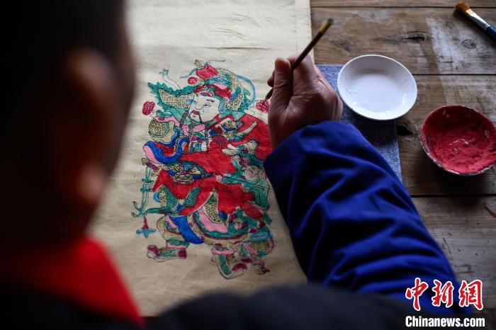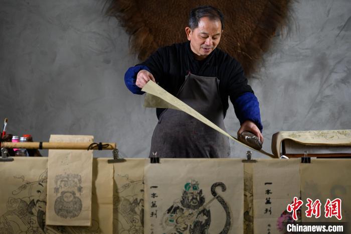 2月6日,梁平木版年畫國家級(jí)非遺代表性傳承人徐家輝制作年畫。中新社記者 何蓬磊 攝