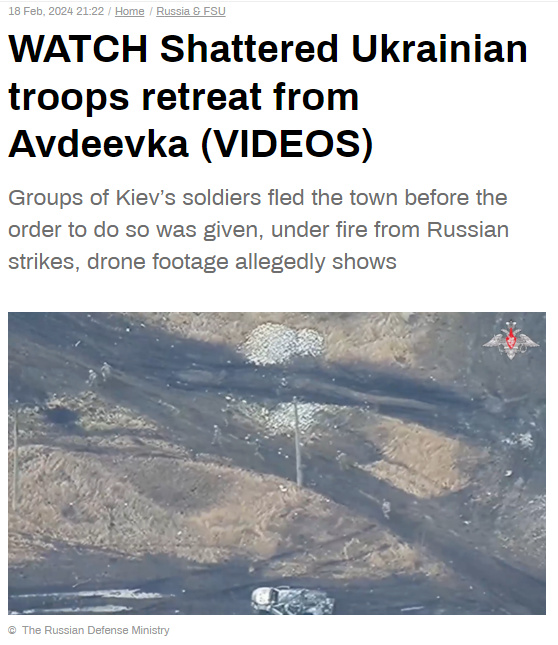 中新網(wǎng)2月19日電 綜合俄羅斯媒體報(bào)道,當(dāng)?shù)貢r(shí)間18日,俄羅斯國(guó)防部發(fā)布了烏克蘭武裝部隊(duì)從阿夫杰耶夫卡潰逃的視頻。