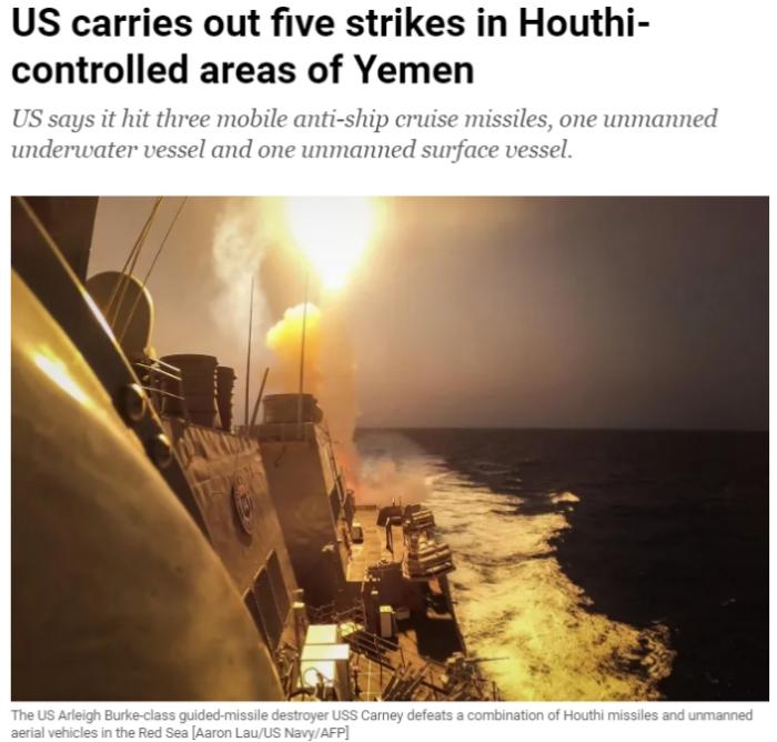 中新網(wǎng)2月19日電 據(jù)卡塔爾半島電視臺18日援引美國中央司令部的消息,當(dāng)?shù)貢r間17日,美軍對也門胡塞武裝發(fā)動了五次空襲。