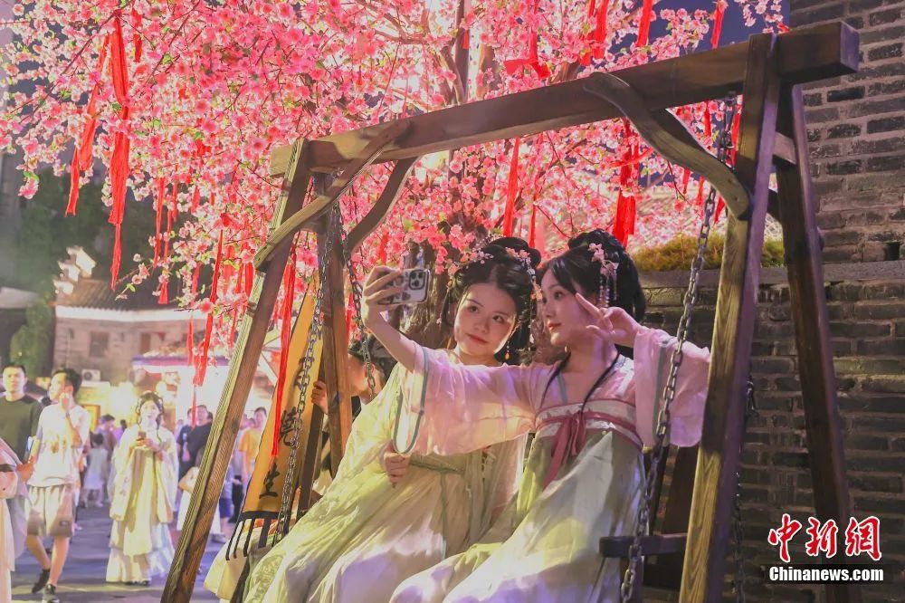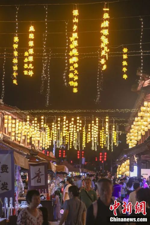 圖為夜幕降臨時(shí),民眾們?cè)诮纤纬菤v史文化街區(qū)中游玩。劉力鑫 攝