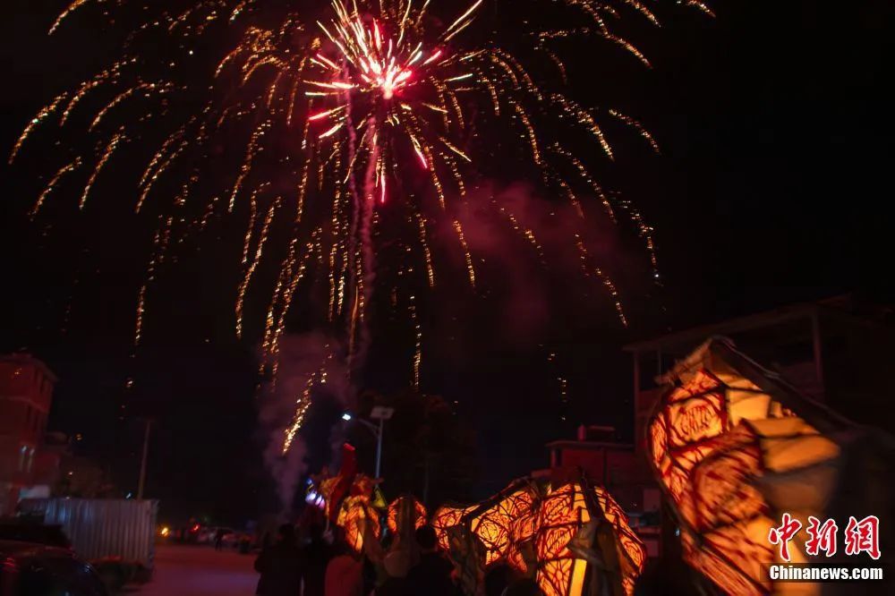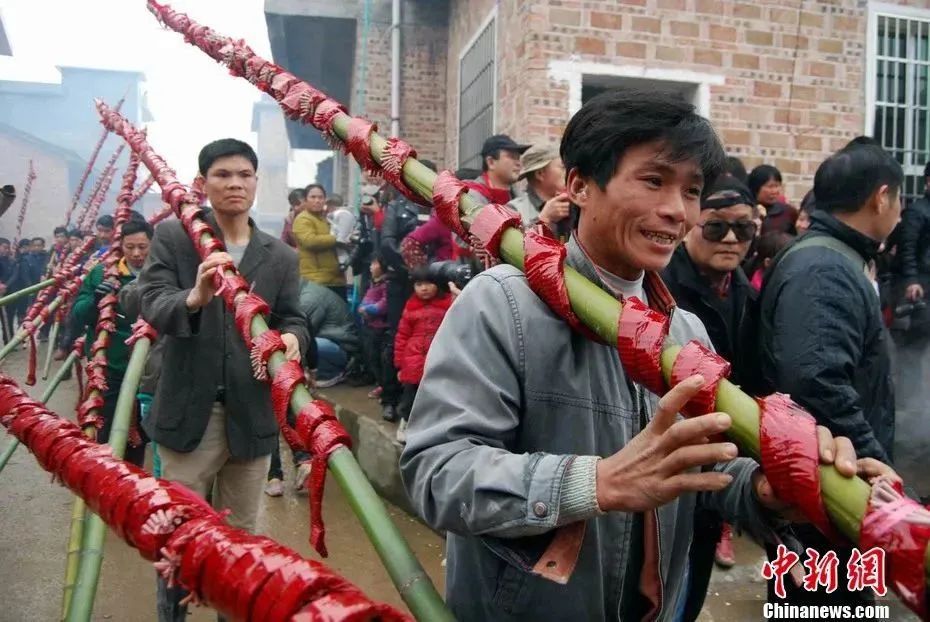 圖為江西省寧都縣石上鎮(zhèn)村民在燃放添丁炮。劉學(xué)恩 攝