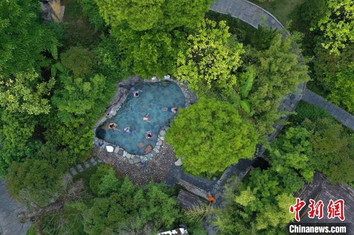 航拍民眾在貴州石阡古溫泉景區(qū)泡溫泉。瞿宏倫 攝