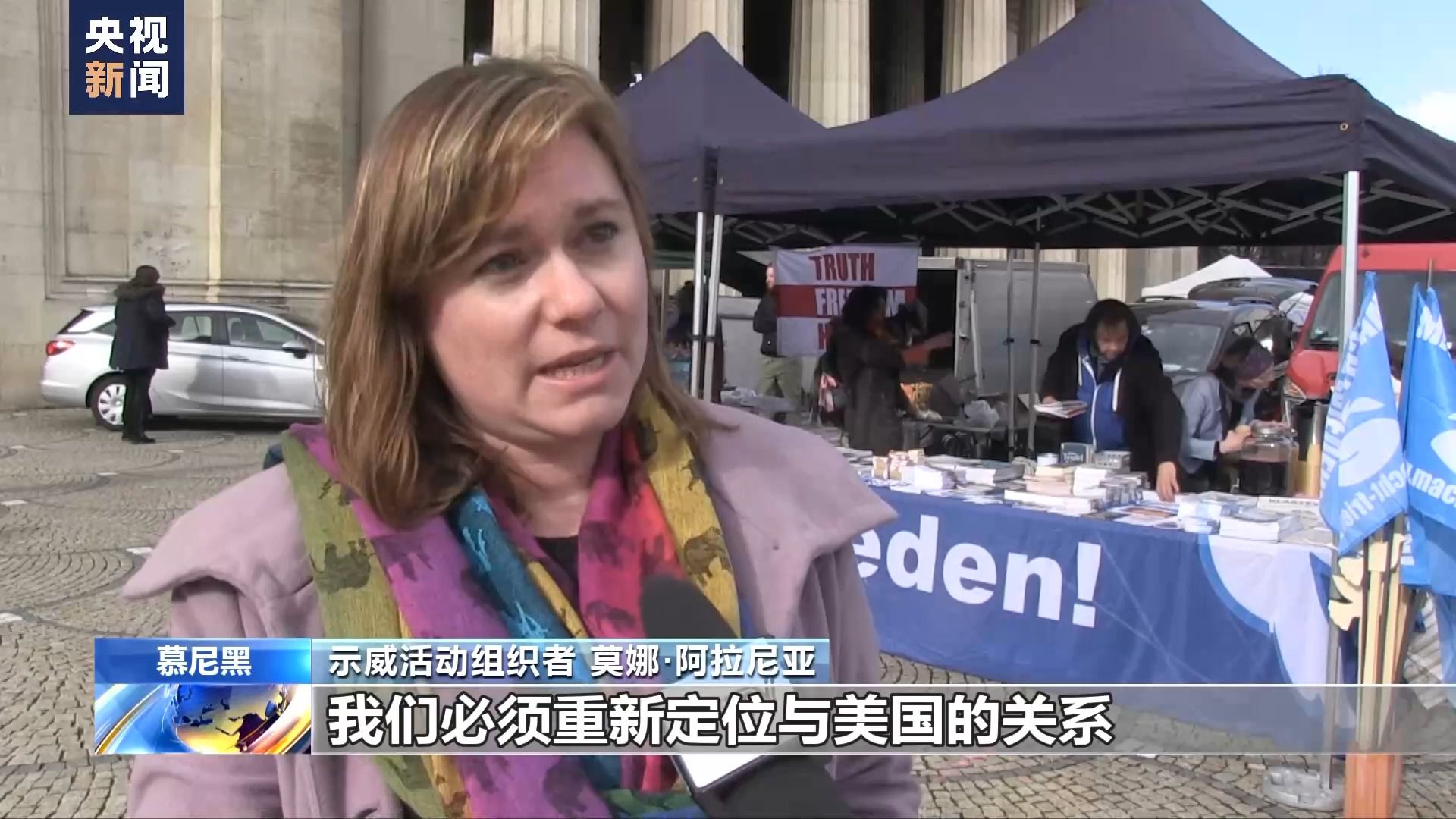 示威活動(dòng)組織者 莫娜·阿拉尼亞:我們必須重新定位與美國的關(guān)系,重新定位與俄羅斯的關(guān)系,歐洲安全與和平架構(gòu)需要與俄羅斯一起建立,而不是與俄羅斯敵對(duì)。
