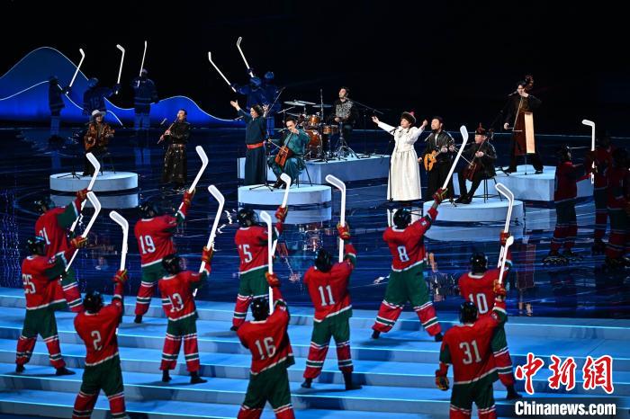 2月17日,第十四屆全國(guó)冬季運(yùn)動(dòng)會(huì)開(kāi)幕式在內(nèi)蒙古呼倫貝爾市海拉爾區(qū)內(nèi)蒙古冰上運(yùn)動(dòng)訓(xùn)練中心舉行。圖為開(kāi)幕式現(xiàn)場(chǎng)。 中新社記者 崔楠 攝