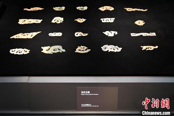 河北博物院展出的中山王厝墓出土的龍形玉佩,形態(tài)式樣各異?!≈行律缬浾?翟羽佳 攝
