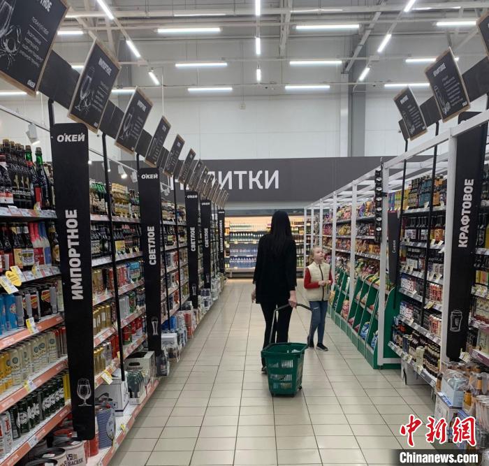 2023年10月,俄羅斯圣彼得堡一超市內的酒類銷售區(qū)?!≈行律缬浾?商永 攝