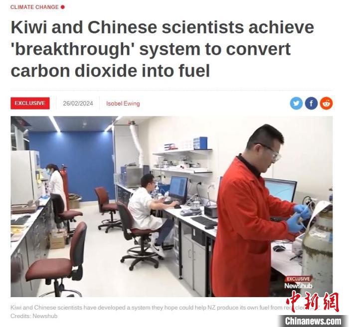 新西蘭和中國科學家正合作開發(fā)一種將二氧化碳轉化為有用物質(zhì)的系統(tǒng)。圖片來源于新西蘭Newshub網(wǎng)站截圖。