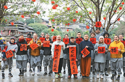 春節(jié)期間,廣西壯族自治區(qū)桂林市靈川縣九屋鎮(zhèn)西嶺山莊迎來(lái)一批外國(guó)客人,他們一起寫(xiě)福字、磨豆腐、舂糍粑、釀圓子……沉浸式體驗(yàn)中國(guó)傳統(tǒng)民俗,現(xiàn)場(chǎng)歡聲笑語(yǔ)不斷。