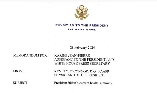 白宮總統(tǒng)醫(yī)生凱文·奧康納在一份關(guān)于總統(tǒng)健康狀況的六頁文件中表示,拜登仍“適合履行職責(zé)”。奧康納寫道,“總統(tǒng)正在很好地適應(yīng)一種有助于控制睡眠呼吸暫停的新設(shè)備。”