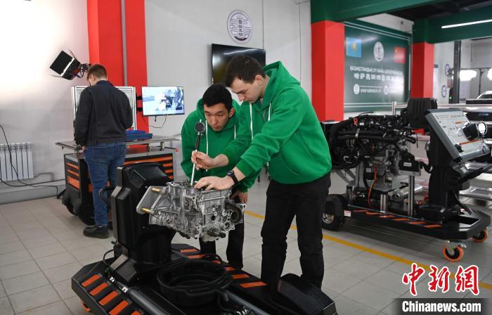 當(dāng)?shù)貙W(xué)生在哈薩克斯坦魯班工坊內(nèi)實操演練?! 」偨y(tǒng)府官網(wǎng)供圖