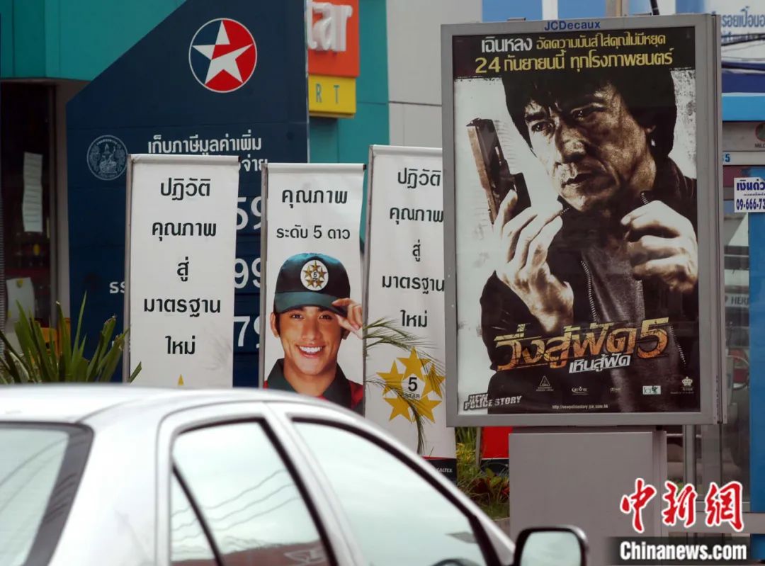 2004年,泰國曼谷主要街道上張貼的成龍主演電影《新警察故事》宣傳海報。張宇 攝