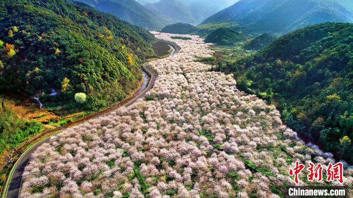 中新網(wǎng)紹興3月10日電(項(xiàng)菁)眼下,隨著天氣漸暖,位于浙江紹興上虞區(qū)章鎮(zhèn)鎮(zhèn)的“中國(guó)最美櫻花谷”——張村櫻花谷逐漸熱鬧起來(lái)。每到3月,綿延于山谷中的600多畝櫻花就會(huì)漸次綻放,朵朵櫻花不僅吸引客流,還帶動(dòng)農(nóng)戶在家門口創(chuàng)收。