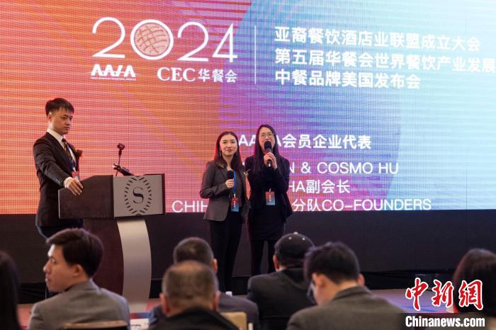 當(dāng)天,與亞裔餐飲酒店業(yè)聯(lián)盟成立大會(huì)同期舉行的還有第五屆華餐會(huì)世界餐飲產(chǎn)業(yè)發(fā)展大會(huì)暨中餐品牌美國發(fā)布會(huì)?;顒?dòng)現(xiàn)場,來自中美兩國逾400位餐飲界人士匯聚一堂,多名企業(yè)代表上臺分享經(jīng)驗(yàn),探討中餐品牌出海前景及本地亞裔餐飲行業(yè)未來發(fā)展。