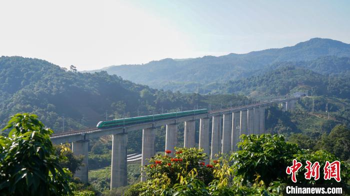 3月17日,一列動(dòng)車組列車行駛在中老鐵路上?!敲?攝