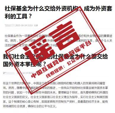 中新網(wǎng)3月18日電 據(jù)“互聯(lián)網(wǎng)聯(lián)合辟謠平臺”微信公眾號消息,近段時間以來,有少數(shù)網(wǎng)絡(luò)自媒體發(fā)布視頻稱,我國社會保險基金“幾乎全部交給外資機構(gòu)管理”,且被用于“買賣A股”,質(zhì)疑社保基金成為“外資套利的工具”。經(jīng)中國互聯(lián)網(wǎng)聯(lián)合辟謠平臺向有關(guān)主管部門核實查證,前述言論均為不實信息。