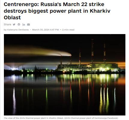 中新網(wǎng)3月31日電 據(jù)《基輔獨立報》當?shù)貢r間30日援引烏克蘭能源公司消息,烏東部最大發(fā)電廠、位于哈爾科夫州的茲米耶夫火力發(fā)電廠已在俄軍22日的導彈襲擊中被摧毀。
