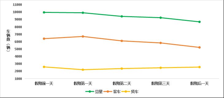 預(yù)計(jì)清明假期,普通公路日均斷面交通量約9550輛,假期前一天與第一天交通量相對較高,隨后有所下降。