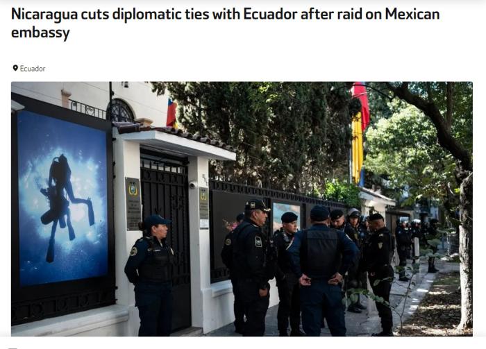 據(jù)報(bào)道,公告稱(chēng),尼方堅(jiān)決反對(duì)并譴責(zé)厄政府“公然違反國(guó)際法的行為”。厄安全部隊(duì)本應(yīng)履行保護(hù)厄公民秩序、安全及生命的職責(zé),卻在厄首都基多進(jìn)行了“不正常且令人斥責(zé)”的行動(dòng)。