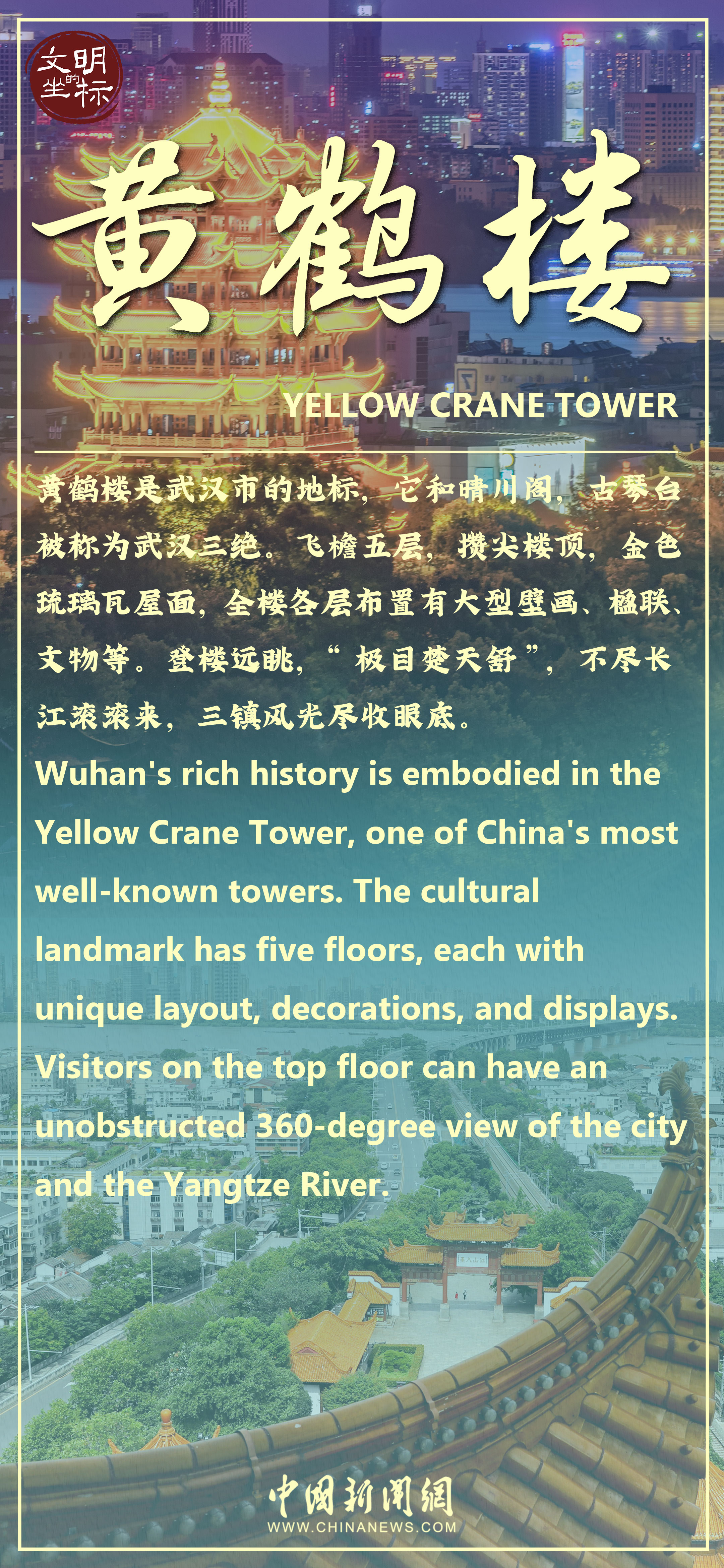 “昔人已乘黃鶴去,此地空余黃鶴樓。黃鶴一去不復(fù)返,白云千載空悠悠?!碧柗Q“天下江山第一樓”的武漢黃鶴樓,在歷史上曾是無數(shù)文人揮灑墨香的靈感源泉。與其相關(guān)的詩詞約有1500首,屈原行吟于此、岳飛填詞于此、李白擲筆于此……豐厚的文化內(nèi)涵,令黃鶴樓成為“凝固的詩”“立體的畫”。《夜上黃鶴樓》項目開啟了千年名樓沉浸式夜游新體驗,悠揚的旋律、炫酷的光影、古風古韻的歌舞,讓無數(shù)游客流連忘返。春光明媚,櫻花盛放,來武漢觀賞黃鶴樓的“櫻花版”新皮膚,感受千年名樓的非凡氣韻和文化精神。