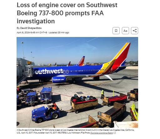 美國西南航空公司表示,維修團隊正在檢查出現(xiàn)事故的飛機。美國聯(lián)邦航空管理局稱,將對此事進行調查。