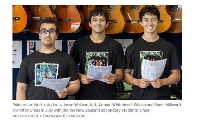圖為將來中國參加合唱節(jié)的3名新西蘭學生。圖片來源于新西蘭Stuff網站截圖