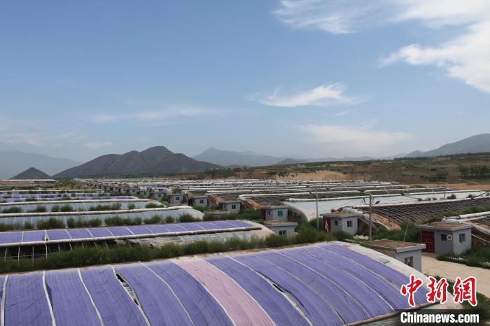 阡陌縱橫,田壟交錯(cuò),春暖花開(kāi)時(shí)節(jié),沿著水泥路來(lái)到陽(yáng)白村東山黃土塬,站在該村蔬菜基地12米高的“觀景臺(tái)”上放眼望去,千畝日光蔬菜溫室大棚整齊排列。目前這里已形成五臺(tái)縣規(guī)模最大的集中連片蔬菜生產(chǎn)基地。