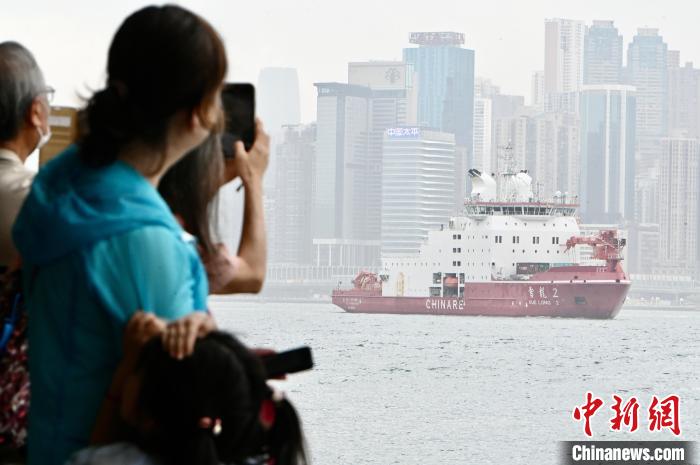 圖為香港市民及游客觀看極地科考破冰船“雪龍2”號(hào)在維港上航行。記者 李志華 攝