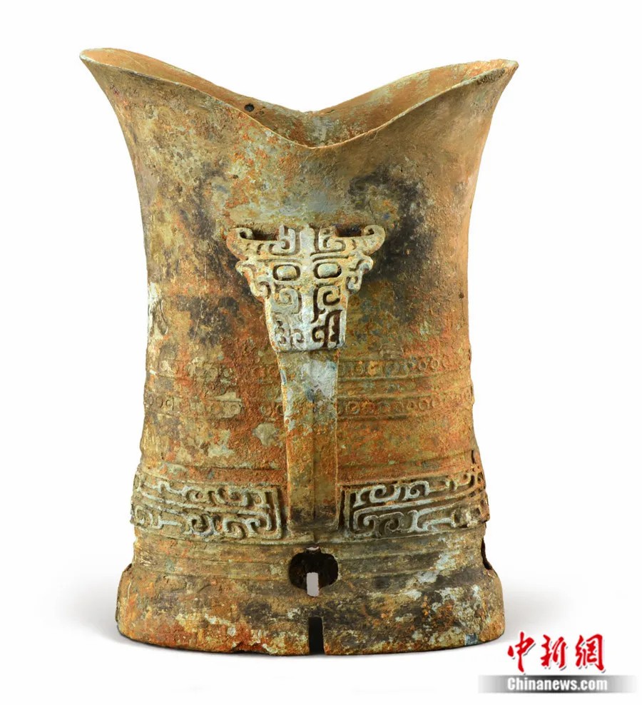 盤(pán)龍城遺址出土的銅帶鋬觚形器。盤(pán)龍城遺址博物院供圖