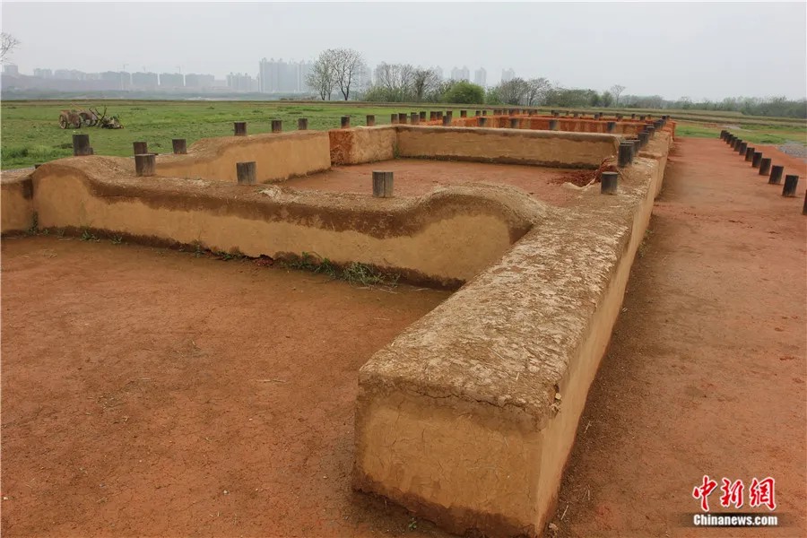盤(pán)龍城遺址宮殿基址復(fù)原展示。張芹 攝
