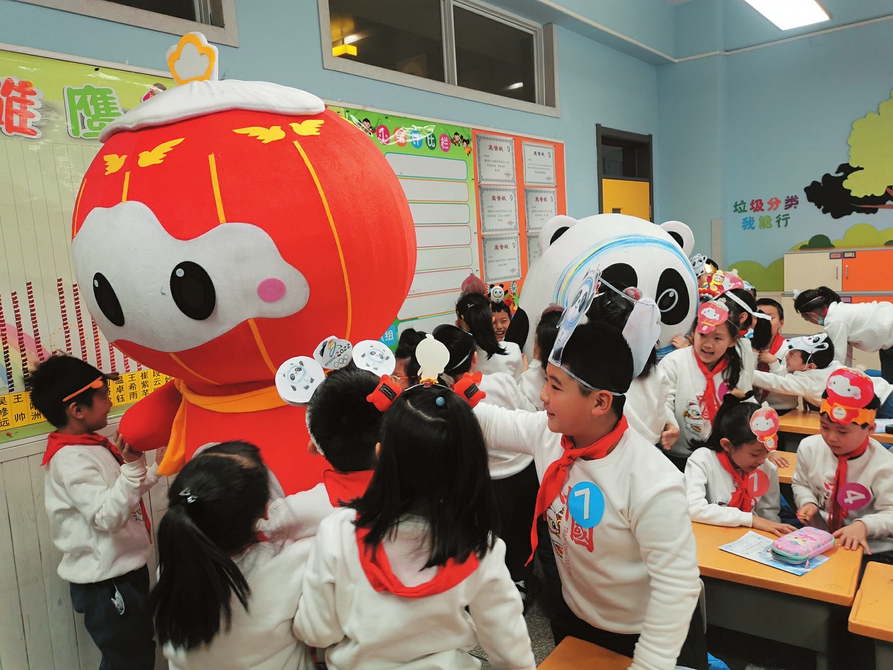 1月4日,太原市新建路小學內(nèi),冬奧會吉祥物“冰墩墩”“雪容融”正在與孩子們互動。據(jù)了解,當日該校開啟“樂考迎冬奧 一起向未來”一二年級樂考活動。通過“冬奧”禮儀、“冬奧”吉祥物我來做等項目測評內(nèi)容,采用游園走班式樂考,讓孩子們在樂考中走近“冬奧會”、了解“冬奧會”。(記者阮洋攝)