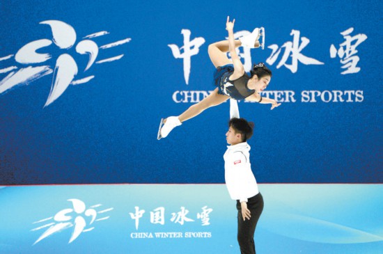 中國花樣滑冰運(yùn)動員隋文靜和韓聰在訓(xùn)練中。本報記者 劉平攝