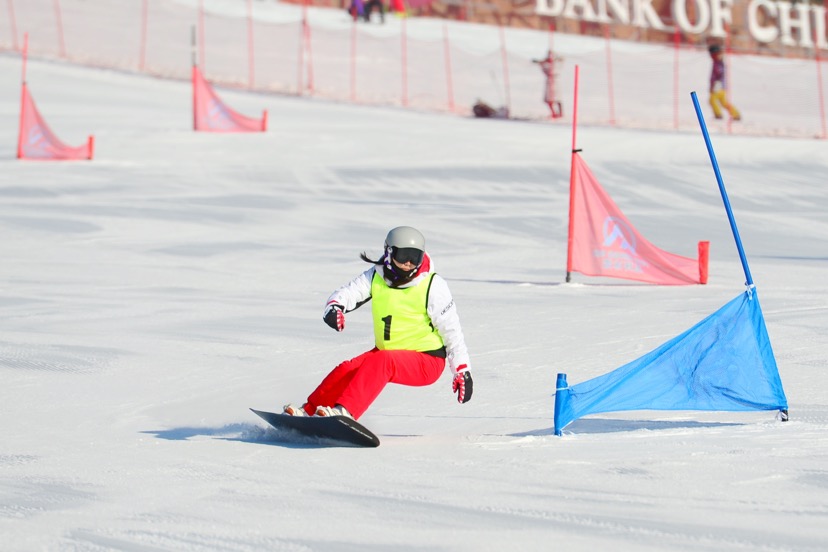 當(dāng)天上午9點(diǎn)20分,大眾滑雪組單板滑雪大回轉(zhuǎn)比賽正式開始。賽場(chǎng)上,選手們速度與技巧的完美結(jié)合,博得了在場(chǎng)觀眾陣陣喝彩。隨后進(jìn)行的高山滑雪大回轉(zhuǎn)比賽也同樣精彩。選手迅速?zèng)_出起點(diǎn),雙手緊握雪杖用力后撐,加速向前滑行,靈巧地在賽道上轉(zhuǎn)變滑行方向,從一個(gè)個(gè)旗門中輕巧地回轉(zhuǎn)而過(guò),每一次急停和回轉(zhuǎn),都濺起一簇簇潔白的雪花。