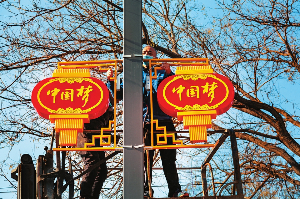 1月11日,工作人員在運城市鹽湖區(qū)紅旗街上安裝花燈。臨近春節(jié),運城市城市管理局組織人力在市區(qū)主要街道裝置迎新花燈,花燈有燈籠、中國結(jié)、鞭炮等多種造型,扮靚了城市,也營造出歡樂、祥和、喜慶的節(jié)日氛圍。(茹雅攝)