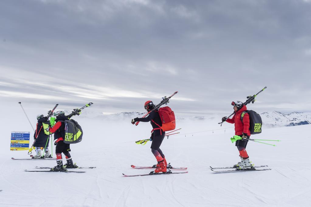 資料圖:2019年4月5日,中國(guó)國(guó)家高山滑雪集訓(xùn)隊(duì)在奧地利蒂羅爾州一處雪場(chǎng)內(nèi)前往訓(xùn)練比賽區(qū)域。新華社記者 郭晨 攝